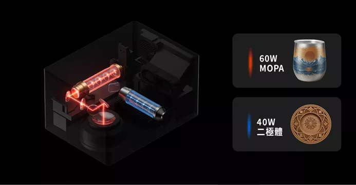 全球首款 60W MOPA + 40W 藍光雙雷射系統,輕鬆駕馭全材質加工