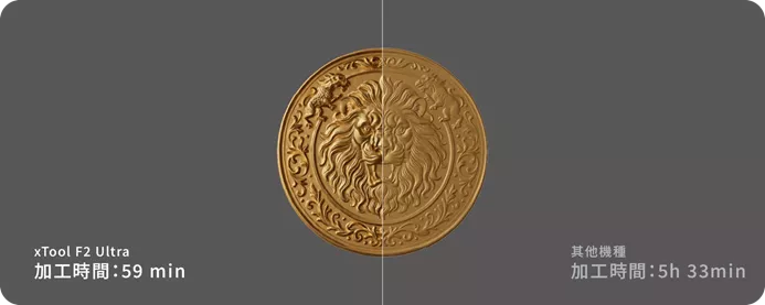 F2 Ultra 可切割的金屬厚度如下: 黃銅:最高可達 2 mm。 不鏽鋼:最高可達 2 mm。 鋁材:最高可達 1 mm。 金屬的實際雕刻深度會依材質種類與加工參數設定而有所不同,但 60W MOPA 光纖雷射 能在各類金屬上提供深度充足且細節精準的加工效果。