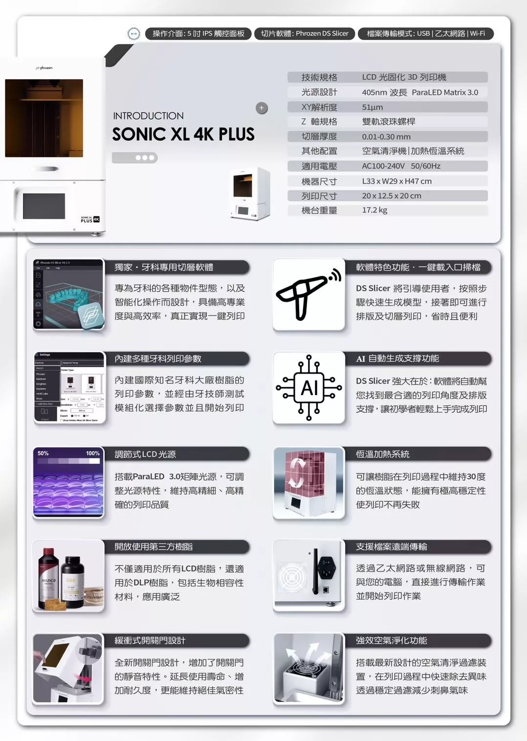 【齒模、牙科首選】SONIC XL 4K PLUS LED 3D列印機