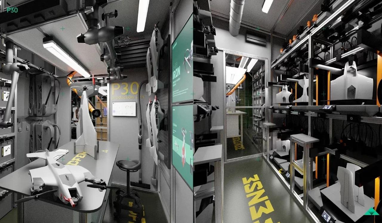 該概念將3D列印設備、組裝站(P30模組)、倉儲運輸(S200模組)及指揮控制中心(F5模組)全面整合於標準化貨櫃內。這種設計的最大優勢在於:生產不再依賴固定設施,而是能透過卡車或鐵路快速轉移,大幅提升戰場存活率。